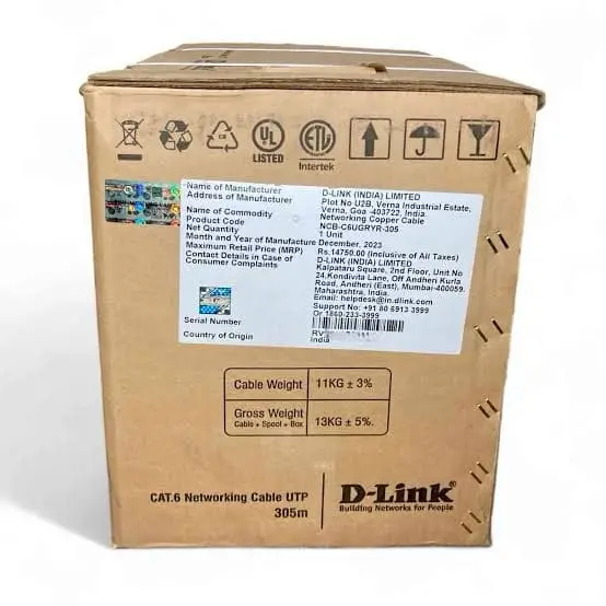 D-Link Cat6 Solid LAN Cable 305M Outdoor Black | High-Durability Outdoor LAN Cable | NCB-C6UBLKR-305-O Original price was: ₹14,999.000.Current price is: ₹12,599.000.