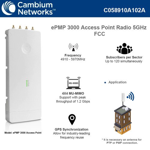 Choosing the Cambium ePMP 3000 5 GHz access point means selecting a solution designed for capacity, scalability, and professional wireless deployments. Its advanced performance characteristics make it suitable for demanding point-to-multipoint applications.