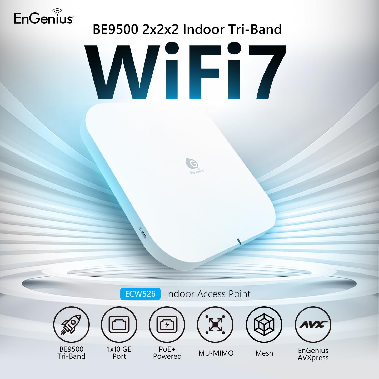 EnGenius ECW526 Cloud Managed Wi-Fi 7 Tri-Band 2x2x2 Indoor Access Point