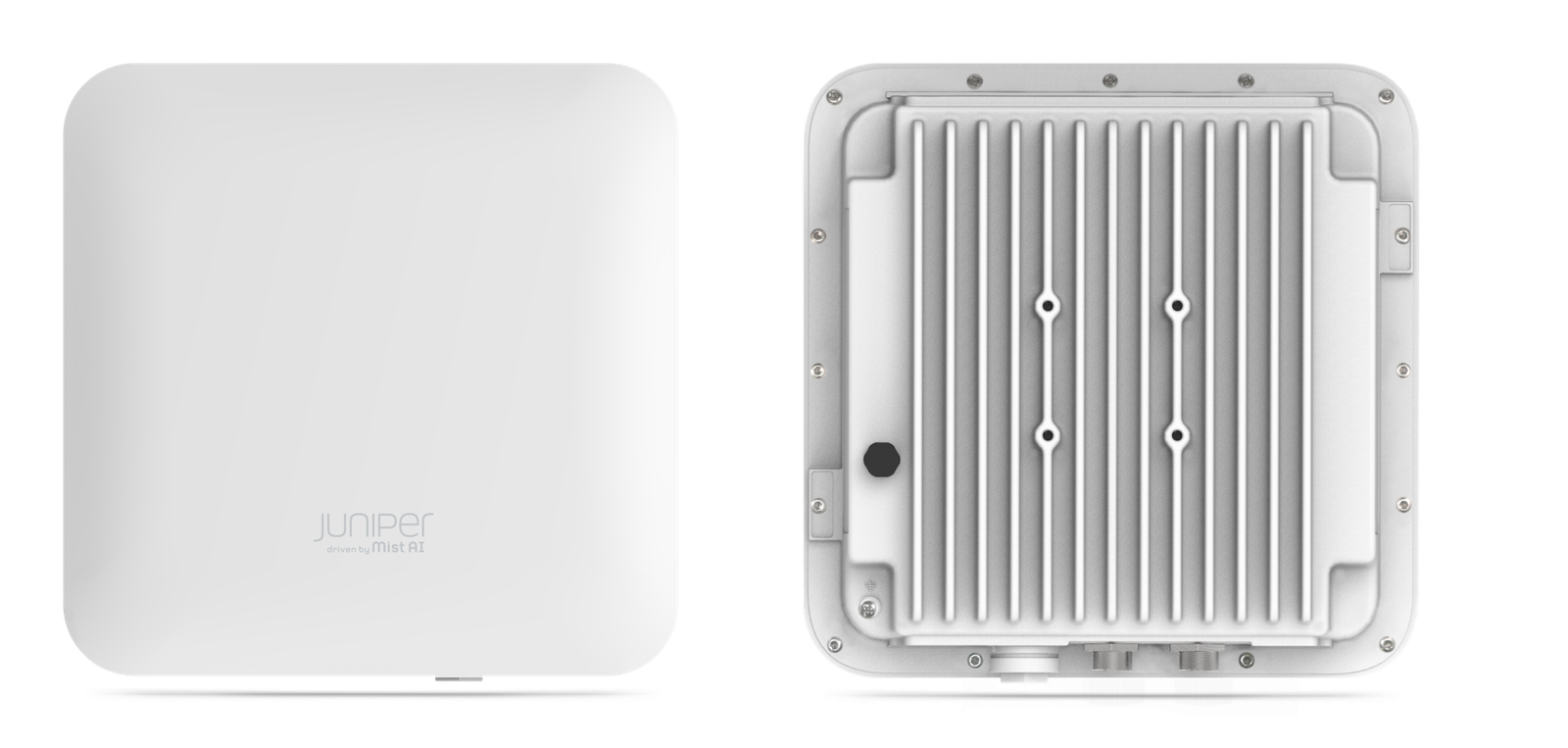 This IP67-rated outdoor access point leverages Mist AI to optimize Wi-Fi 6 performance in extreme weather conditions. It features integrated BLE and tri-radio architecture to provide superior location services and network visibility.