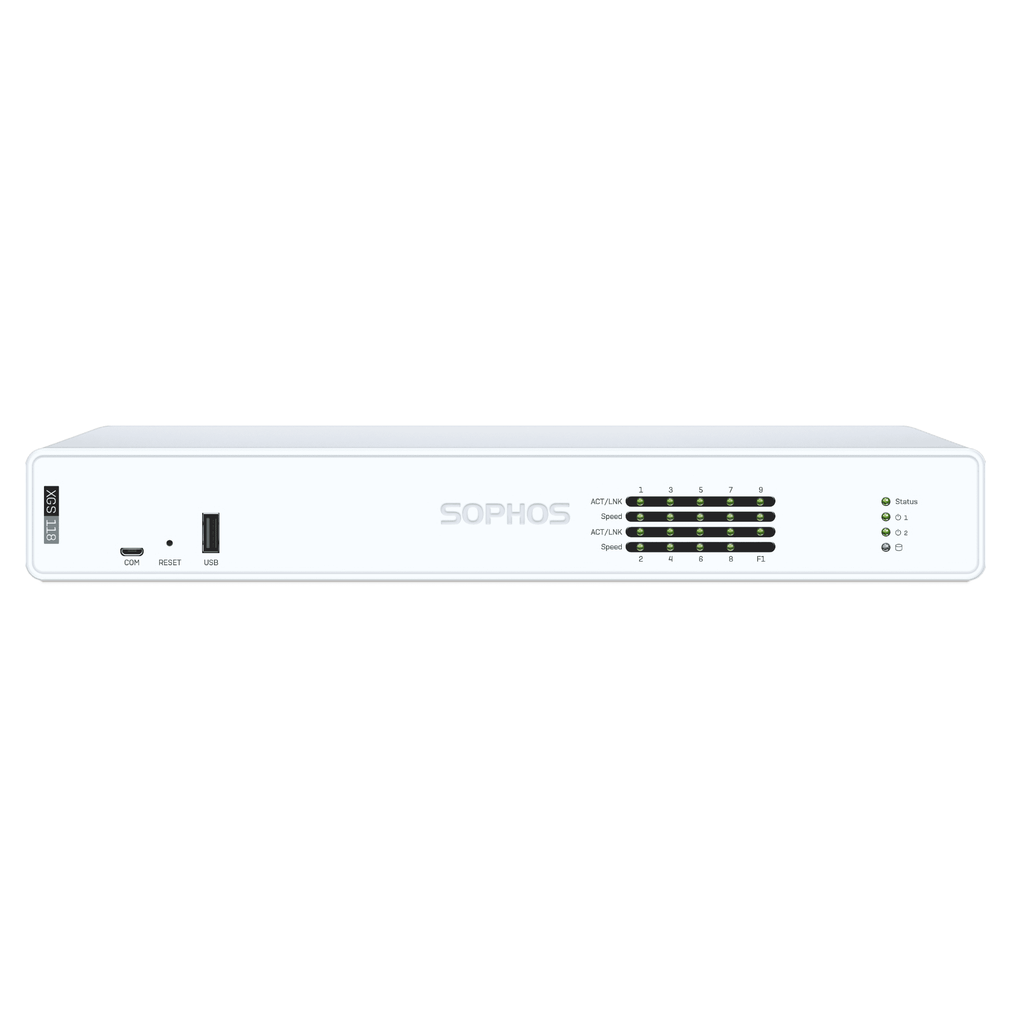 Sophos XGS 116 Next-Gen Firewall showing front ports and status LEDs