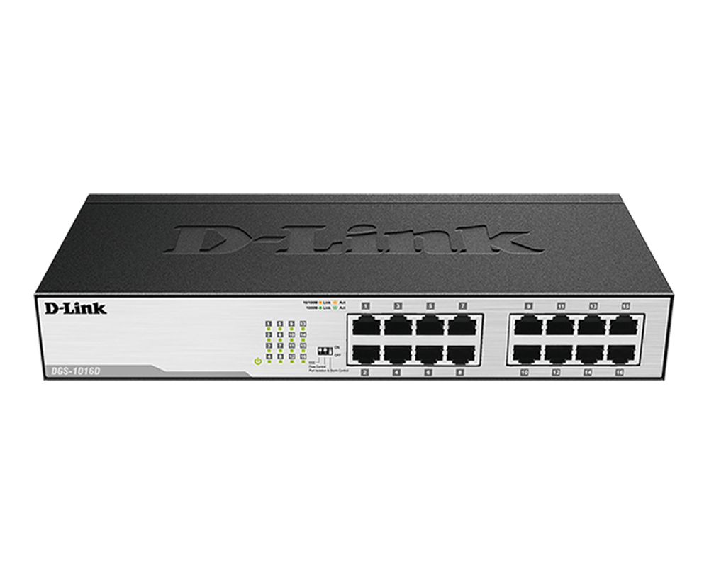 D-Link DGS-1016D is a 16-port Gigabit unmanaged desktop switch designed for fast, reliable, and simple LAN expansion in office and commercial networks.