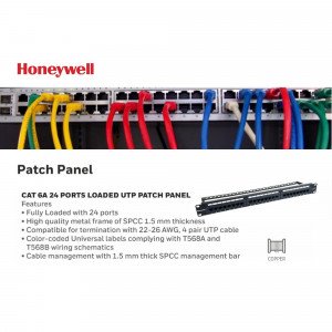 The Honeywell UTP CAT6A Loaded Patch Panel is part of Honeywell’s comprehensive passive networking solutions designed for reliable structured cabling.
