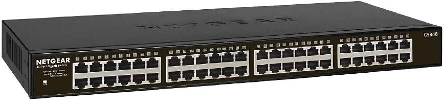 The Netgear GS348 is a high-capacity 48-port Gigabit Ethernet unmanaged switch designed to provide simple, reliable, and high-speed wired connectivity for business, enterprise, and commercial networking environments. Built for organizations that require dependable network expansion without configuration complexity, this switch offers plug-and-play operation combined with enterprise-grade build quality.