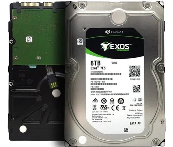The Seagate Exos 7E10 ST6000NM019B 6TB Enterprise HDD is built for data centers and servers, offering 7200RPM performance, 256MB cache, SATA 6Gb/s interface, high workload support, continuous 24×7 operation, and a reliable 5-year warranty.