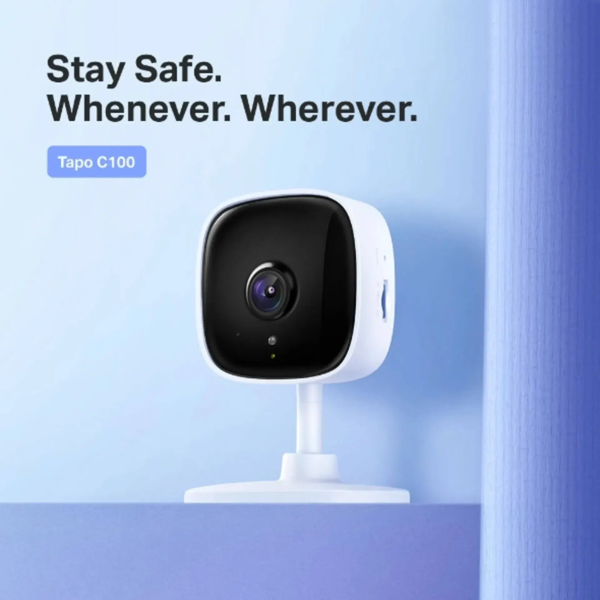 The TP-Link Tapo C100 is a compact and affordable home security Wi-Fi camera designed to deliver reliable indoor monitoring. With HD video, motion detection, and night vision, the TP-Link Tapo C100 helps keep your family and property safe, day or night.
