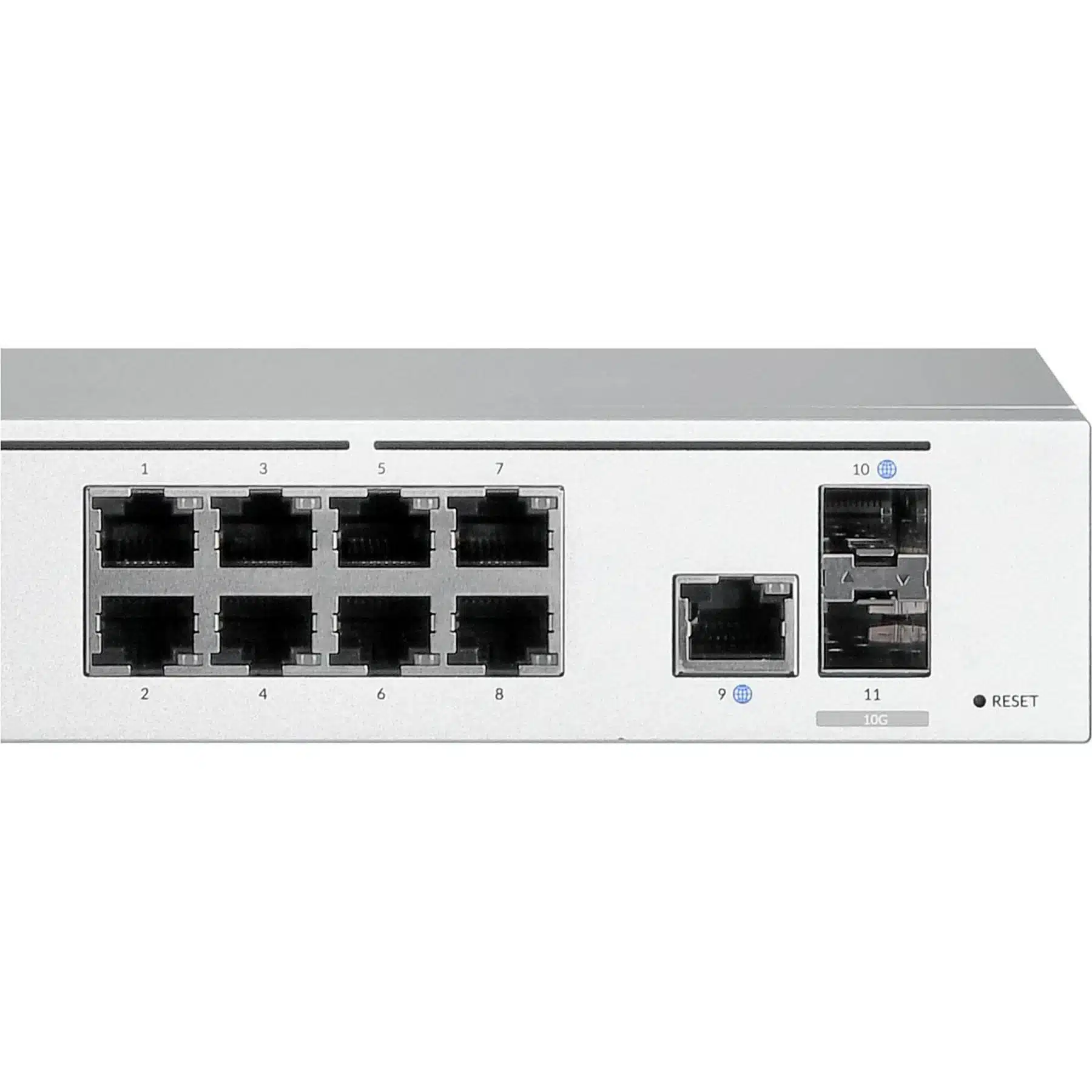 - Integrated 8‑port managed Gigabit switch (non‑PoE)