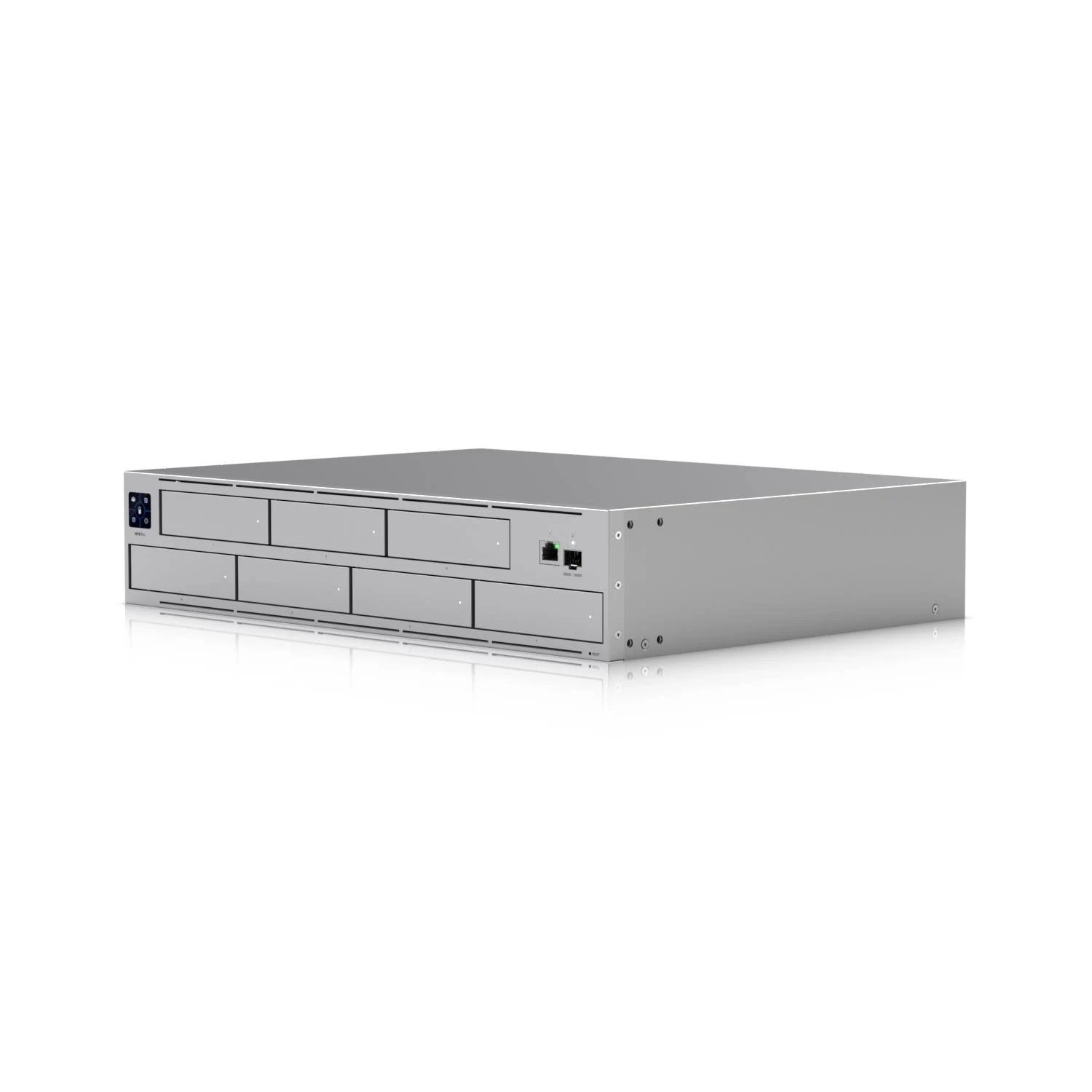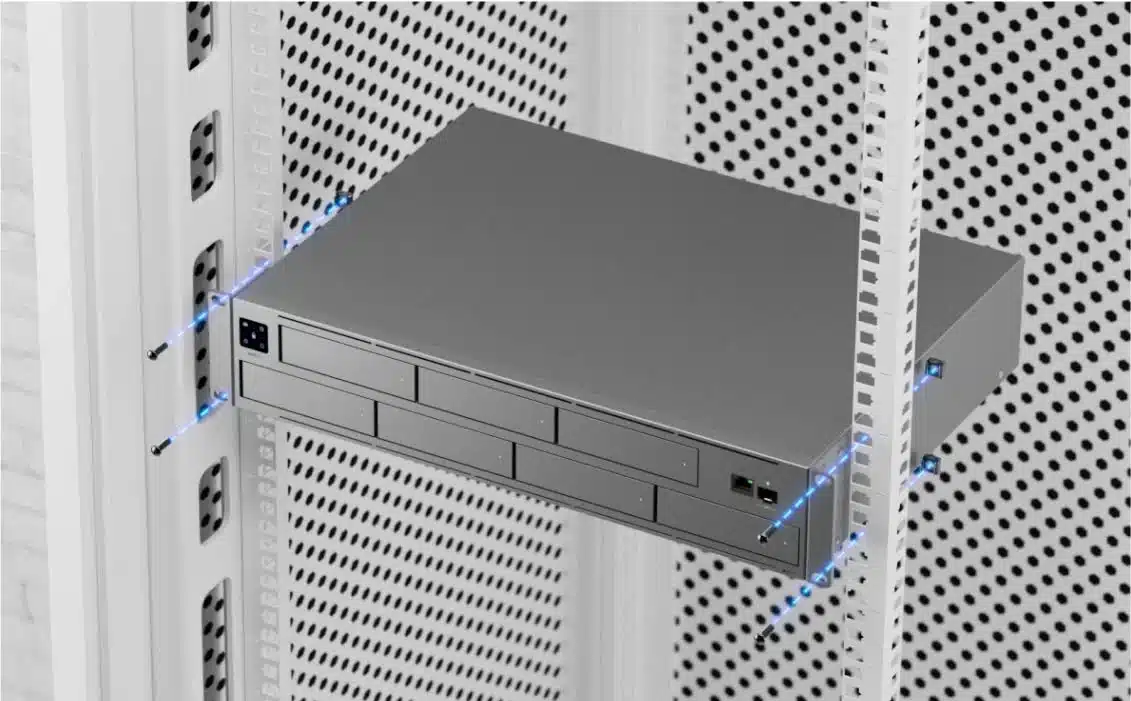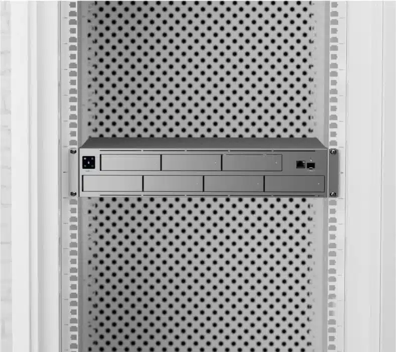 The Ubiquiti UNVR‑Pro supports up to eight 3.5″ hard drives (sold separately) and offers software RAID capabilities for flexible storage configurations. Use RAID 5 or 6 for redundancy and high capacity, or RAID 1/10 for maximum data protection and throughput.