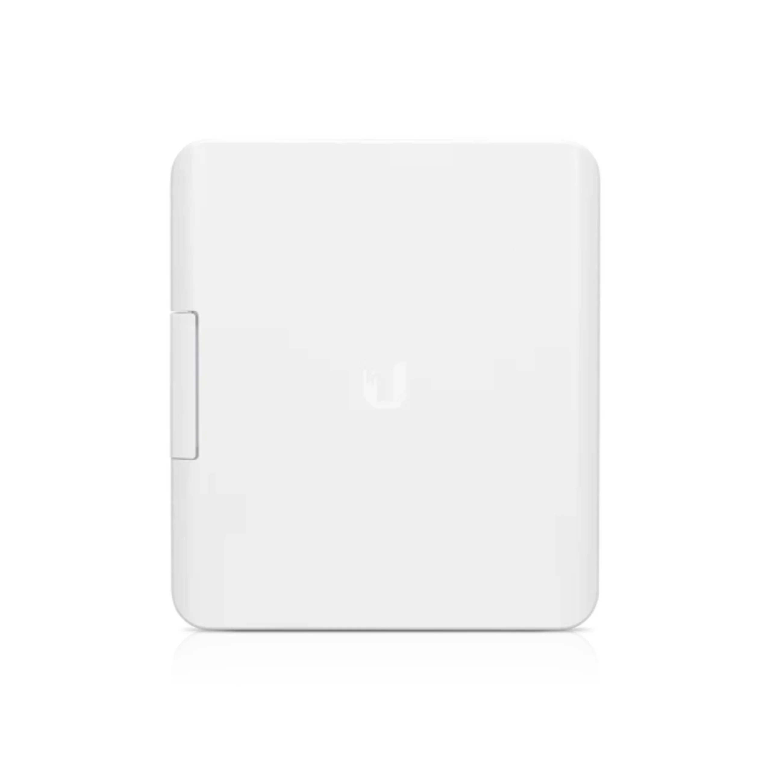 The Ubiquiti USW-Flex-Utility allows clean cable entry and exit, supporting professional cable routing for Ethernet and PoE connections.