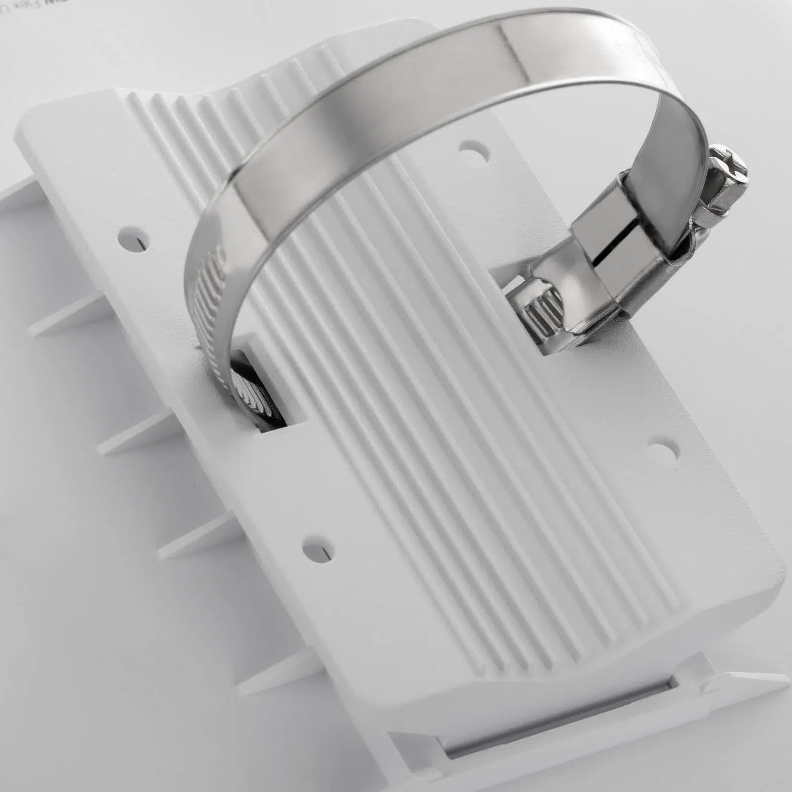 The Ubiquiti USW-Flex-Utility includes mounting provisions that allow installation on poles, walls, and flat surfaces.